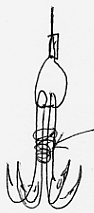 又、ヒラキを二つ背中合わせにして、ぶらぶらさせて、そのまま固定しないで使う人、紐やナイロン、ケプラートなどで固定して四本又にして使う人も居る。(瞬間接着剤で固定。)