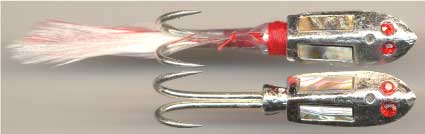 上の写真が、シャビキです。 上の物が、鳥毛を巻いた上にハゲの皮を巻いた物です。 下の物は、何も巻いてない物です。是に、タコベイトを巻いて使ったり、各漁師独特の工夫をして、使います。
